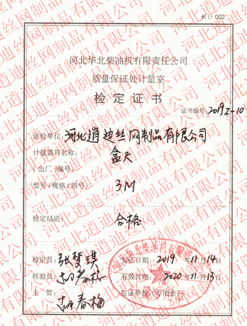 • 由質(zhì)量保證處計(jì)量室鑒定,出的鑒定證書,為了規(guī)整計(jì)量尺寸由于市場計(jì)量器材尺寸又差距造成客戶尺寸不對原因我公司做了測量器材鑒定